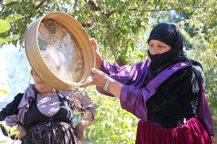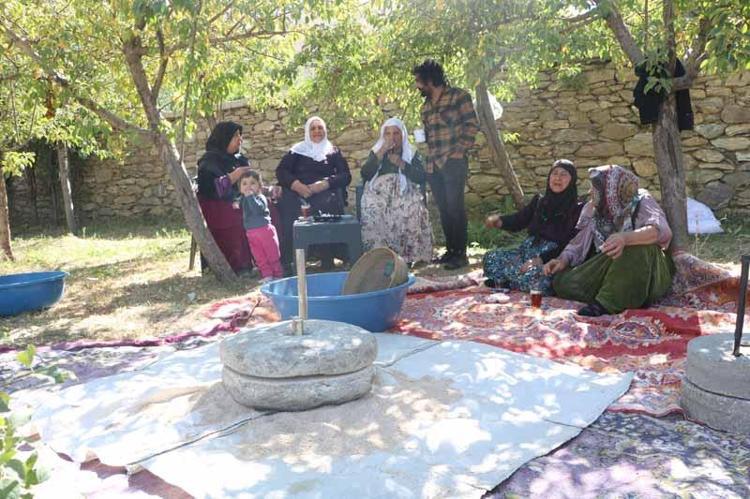Köyün kadınları bir araya gelip yardımlaşıyoruz. Bir taraftan da sohbet edip, şarkılar söyleyerek eksi günleri yad ediyoruz. Bu çalışmamız çok zevkli geçiyor. Biz çalışırken, köyün erkekleri de bize yardım ediyor" dedi.