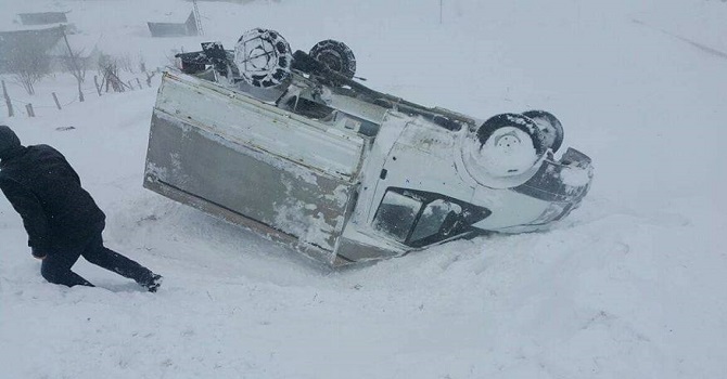 Hakkari'de iki gündür devam eden kar yağışı kazalarda beraberinde getirdi. Kar yağışıyla beraber yollarda oluşan buzlanma kazaya neden oldu.
