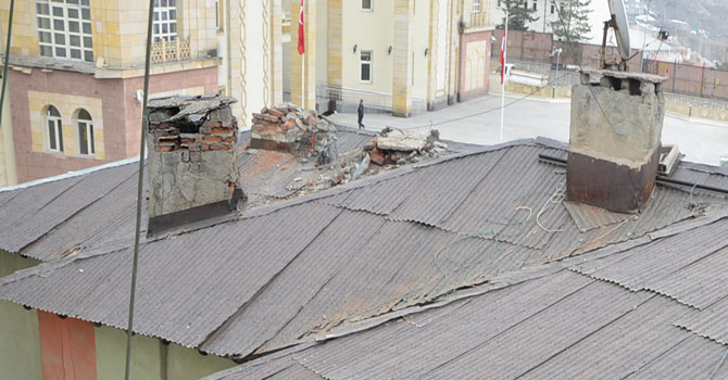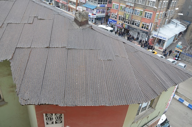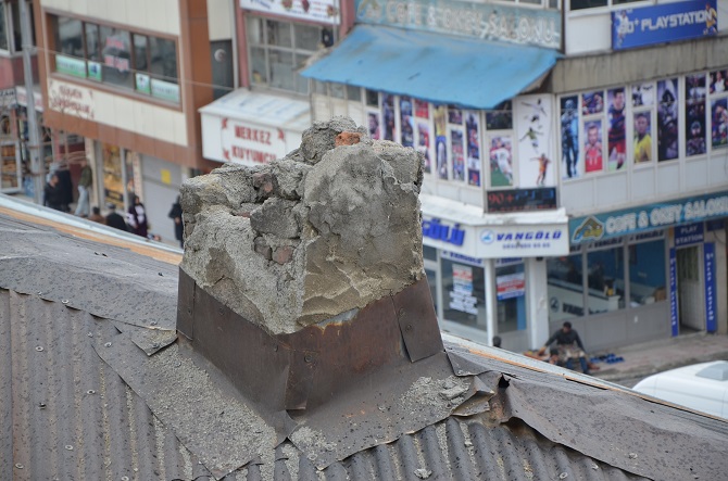 Hakkari'nin Atatürk Caddesi üzerinde bulunan binanın çatısındaki taştan yapılmış bacalar büyük tehlike saçıyor.