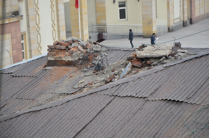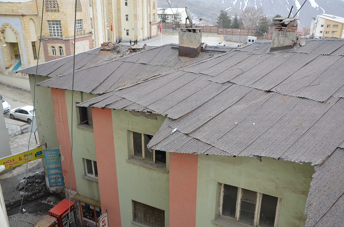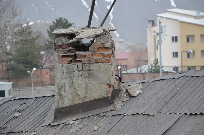 Hakkari'nin en işlek caddesi olan İstiklal caddesi ve Atatürk caddelerinin kesiştiği köşede bulunan bina tehlike saçıyor. Bina sahiplerinin görmezden geldiği ve meydana gelebilecek tehlikelere aldırış etmediği kırık bacalar, korkutmaya devam ediyor.