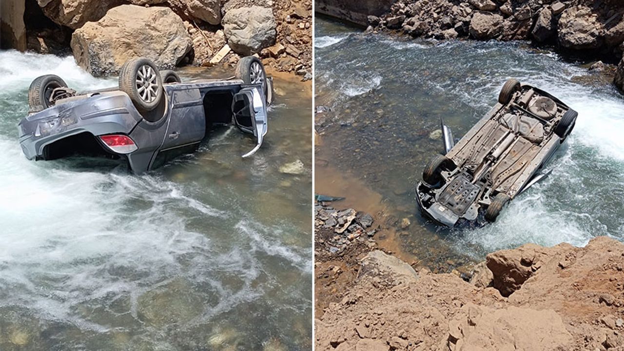 Hakkari'de kontrolden çıkan araç dereye uçtu