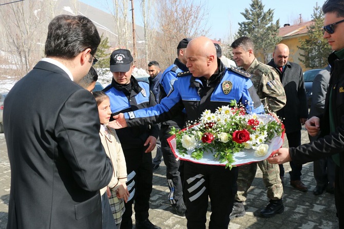 Merzan Mahallesi'ndeki Cengiz Topel Ortaokulu'nda düzenlenen etkinliğe giden İl Emniyet Müdürü Suvat Dilberoğlu, İl Jandarma Komutanı Tuğgeneral Ferdi Korkmaz, Milli Eğitim Müdürü Veysel Durgun, Aile ve Sosyal Politikalar Müdürü Mehmet Akif Bildirici, müdür yardımcıları ve polisleri, okul idaresi ve öğrenciler ellerinde çiçeklerle karşıladı.