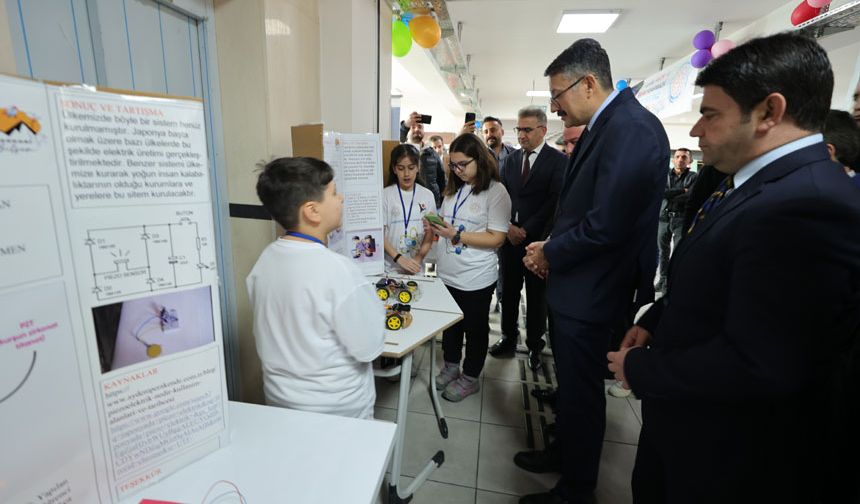 Çelik, Vali İdris Akbıyık İlkokulu öğrencilerinin katı atıklardan hazırladığı çalışmaların da yer aldığı sergiyi gezdi, projeleri inceledi.