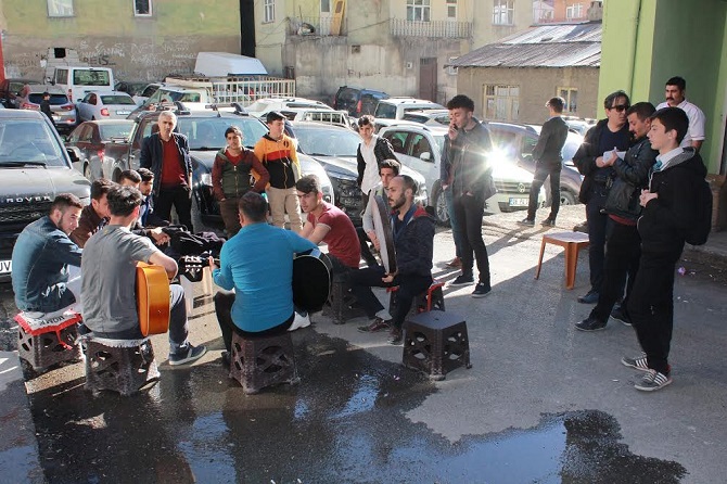 Hakkari Üniversitesinde farklı bölümlerde okuyan öğrenciler, ellerine aldıkları gitar, def ve benzeri