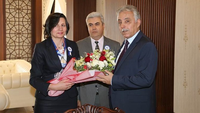 Vali Cüneyit Orhan Toprak, "Vergi Haftası" kutlamaları kapsamında Hakkari Defterdarı Mehmet AR, Vergi Dairesi Müdürü Aliye Salcı ve beraberindeki birim müdürlerini makamında kabul etti.