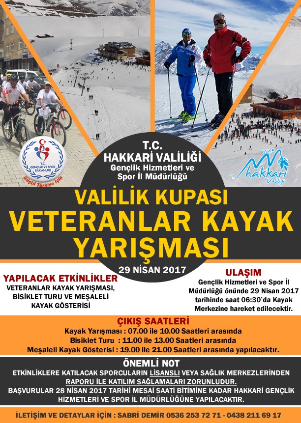 Hakkari valiliği ile Hakkari Gençlik Hizmetleri ve Spor İl Müdürlüğü veteranlar kayak yarışması düzenliyor.