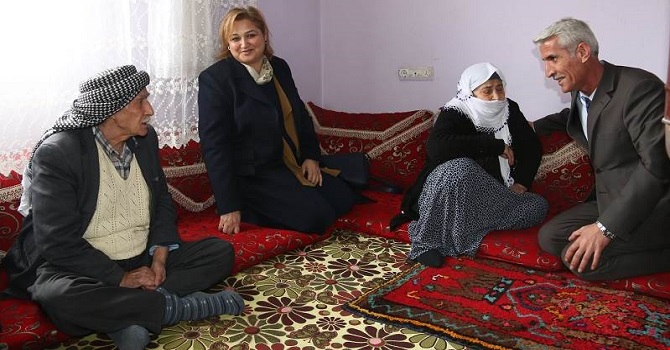 Topraki, daha sonra Medrese Mahallesi’nde ikamet eden 97 yaşındaki Ayşe Kızılkaya ve 76 yaşındaki oğlu Abdulkadir Kızılkaya, ardından da Berçelan Mahallesi’ndeki 97 yaşındaki Zekiye Temel isimli yaşlıları ziyaret etti.