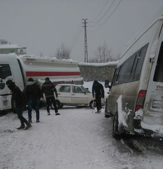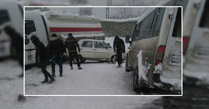 Hakkari Dağ ve Komando Tugayına yakıt götüren tanker, yoğun kar yağışının devam ettiği Hakkari Yeni Mahalle yolunda kayarak yol kenarında kalırken, aynı bolgede devam eden kar yağışını görüş mesafesini düşürmesiyle birlikte yolun buzlanması sonucu içi yolcu dolu şehir içi minibüsü ve bir kaç aracın daha karıştığı zincirleme trafik kazası meydana geldi.