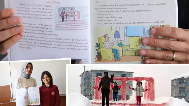Anıtkabir'i görmek isteyen kızı Hira'nın hayalini kardan Anıtkabir yaparak gerçekleştiren inşaat işçisi baba ders kitabına konu oldu.