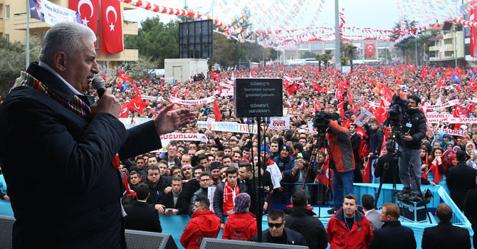 Başbakan Binali Yıldırım, Balıkesir'de düzenlediği referandum mitingindeki konuşmasında, başta Almanya ve Hollanda olmak üzere toplantılara izin vermeyen Avrupa ülkelerine de tepki gösterdi. Yıldırım, "Ha şimdi 'hayır'cılar kervanına Avrupalılar da katıld