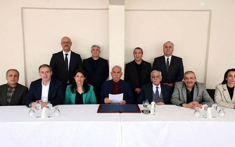 “DEM Parti İmralı Heyeti olarak 18 Mayıs 2025 tarihinde İmralı Adasında Sayın Abdullah Öcalan‘la bir görüşme gerçekleştirdik. Görüşmede, Sayın Öcalan kamuoyuna şu mesajı iletmiştir: