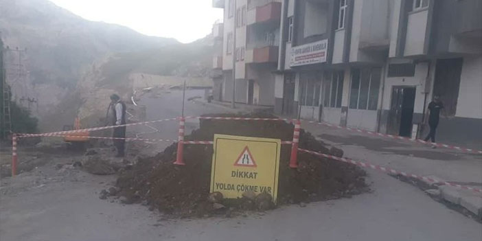 Belediye ekipleri çökme nedeniyle yolu yaya ve araç trafiğine kapattı.