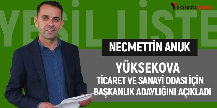 Jeoloji Mühendisi Necmettin Anuk, Yüksekova Ticaret ve Sanayi Odası (YÜTSO) Başkanlığı seçimleri için adaylığını açıkladı. Genç ve dinamik bir ekip ile yola çıktık diyen Anuk, hedefinin proje odaklı bir ticaret ve sanayi odası oluşturmak olduğunu söyledi.