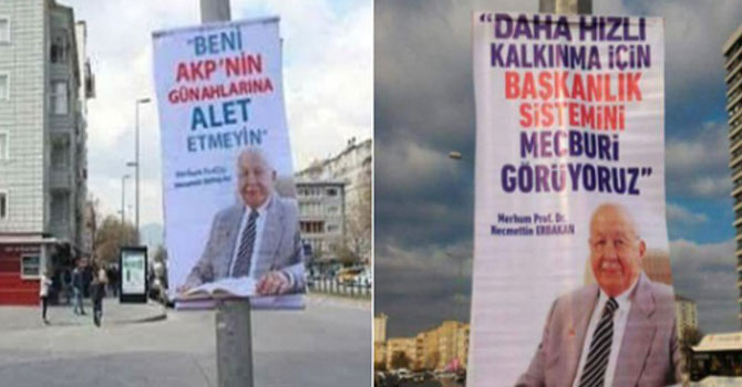 Kaldırılan afişlerin yerine ise Erbakan’ın, “Beni AKP’nin günahlarına alet etmeyin” sözlerinin yer aldığı afişler asıldı.