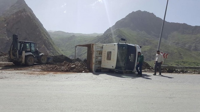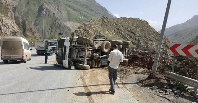 Sürücüsünün ismi öğrenilemeyen 65 NZ 004 plakalı kamyon, içindeki molozları boşaltırken yan yatması sonucu devrildi. Devrilen kamyonun altında son anda kalmaktan kurtulan sürücü yaralandı. Kazayı hafif yaralalarla atlatan sürücü Hakkari Devlet Hastanesi'ne kaldırılarak tedavi altına alınırken, Kaza sonucu devrilen kamyon ise yol ortasında bırakılarak yaşanabilecek olası kazalara adeta davetiye çıkartılıyor. Özellikle akşam saatlerinde trafikte seyreden araçlar için büyük tehlike oluşturan ağır tonajlı araç, kazanın üzerinden 4 gün geçmesine rağmen kazanın meydana geldiği yerden kaldırılamadı.
