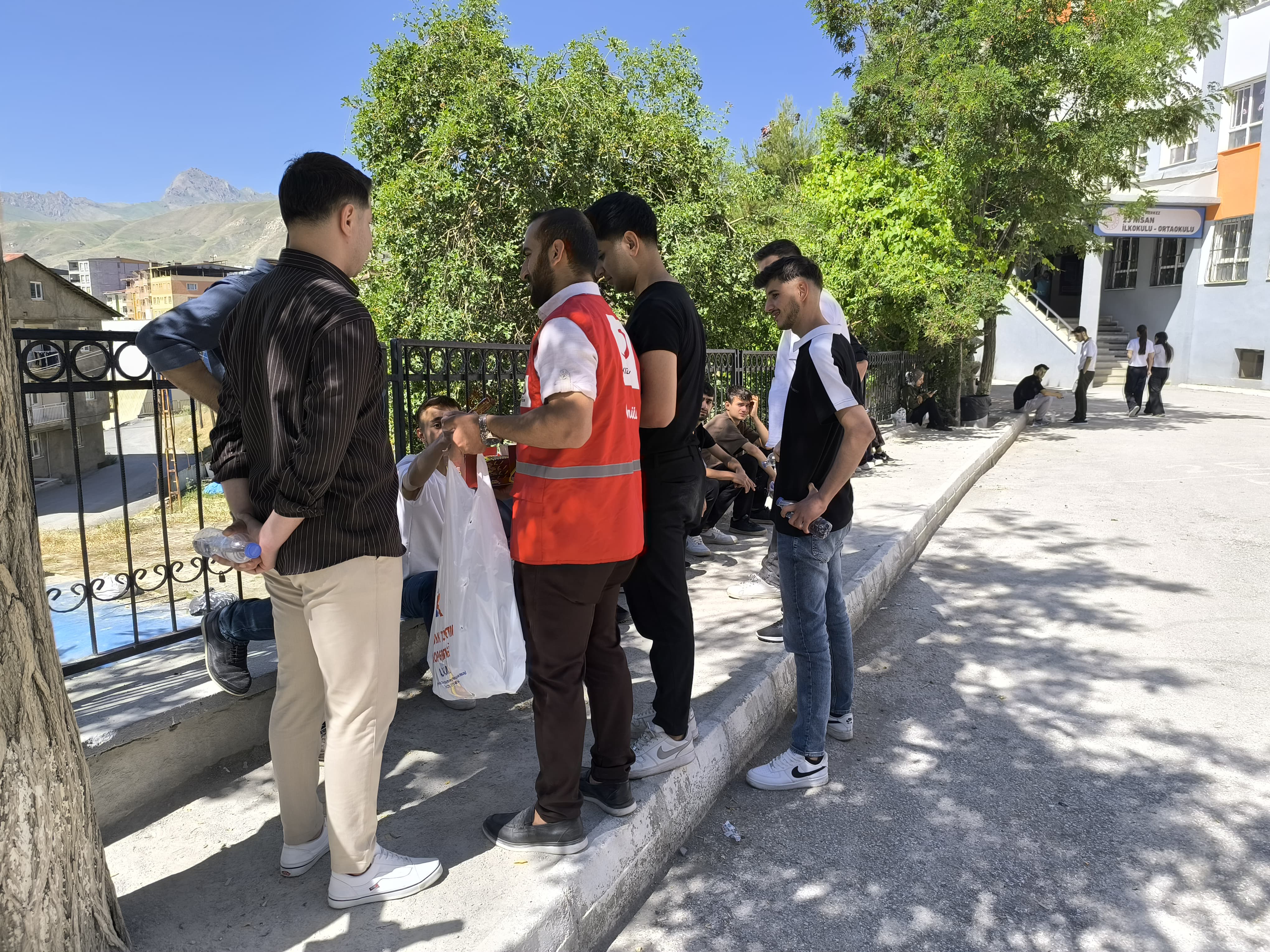 Kızılay Hakkâri Şubesi, Yükseköğretim Kurumları Sınavı’na (YKS) giren öğrencilere moral vermek amacıyla sınav merkezlerinin önünde stantlar kurarak ikramlarda bulundu.