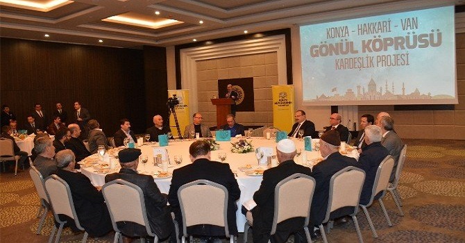 Konya-Hakkari-Van Gönül Köprüsü Kardeşlik Projesi kapsamında Konya'ya gelen kanaat önderleri ve öğrenciler Konya Büyükşehir Belediyesi'nin ev sahipliğinde bir araya geldi. Programda konuşan, AK Parti Konya İl Başkan Vekili Serhat Güngör ve AK Parti Hakkari İl Başkan Yardımcısı Nebi Adıyaman, kardeşlik hukukunun gelişmesinin önemine dikkat çektiler. Konya Büyükşehir Belediyesi Başkan Vekili Mahmut Sami Şahin, Van ve Hakkari'den gelen misafirleri sevgi ve kardeşlik şehri Konya'da ağırlamaktan mutluluk duyduklarını ifade etti.