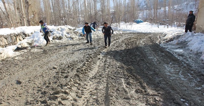 Hakkari Belediyesi tarafından iki yıl önce açılan 800 metre uzunluğundaki yol bataklığı andıran bir çamur deryası olarak kaldı. 800 metre uzunluğunda, 7 metre genişliğindeki yeni yol ile beraber iki taraflı taş istinat duvarı ve 750 metrelik sulama kanalı yapılmasına karşın mahallelinin ulaşım sorunu bitmedi.