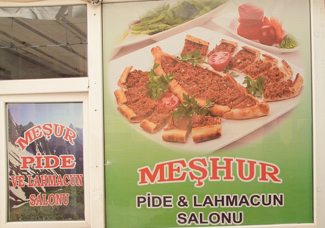 Meşhur Pide ve Lahmacun Salonunda; Karışık, kıymalı, kaşarlı, kuşbaşılı pide çeşitleri ve nefis lahmacun çeşitlerinin yanı sıra; salata çeşitleri ve soğuk içecekler bulunur.