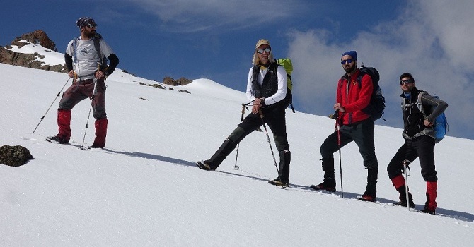 Van Kültür ve Turizm Müdürlüğü'nün daveti üzerine kente gelen Milli Dağcı Tunç Fındık, Patika Doğa Sporları Kulübü üyeleri ile birlikte Erek Dağı'na tırmandı.