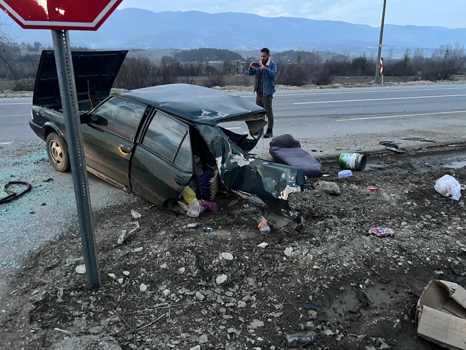 Kaza, akşam saatlerinde ilçeye bağlı Yıldırım Beyazıt Mahallesi, Bolu Caddesi üzerinde meydana geldi. Bolu'dan Mudurnu istikametine giden İrfan Yazgan yönetimindeki 54 YD 133 plakalı otomobil, karşı yönden gelen Turan Savaş yönetimindeki 14 GC 422 plakalı otomobille çarpıştı. Kazanın etkisiyle İrfan Yazgan’ın kullandığı otomobil ikiye bölünürken, diğer otomobil de savrularak yol kenarındaki fabrikanın duvarına çarptı.