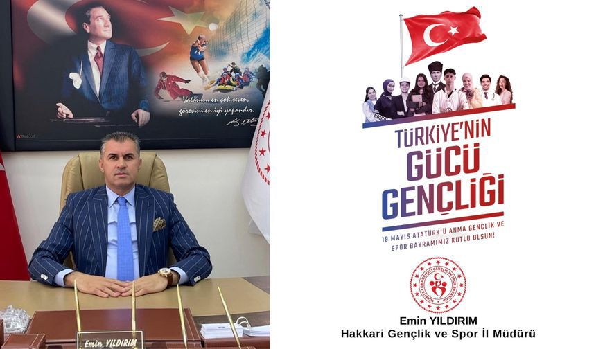Hakkari Gençlik ve Spor İl Müdürü Emin Yıldırım 19 Mayıs Atatürk'üAnma Gençlik ve Spor Bayramı dolayısıyla bir mesaj yayımladı.