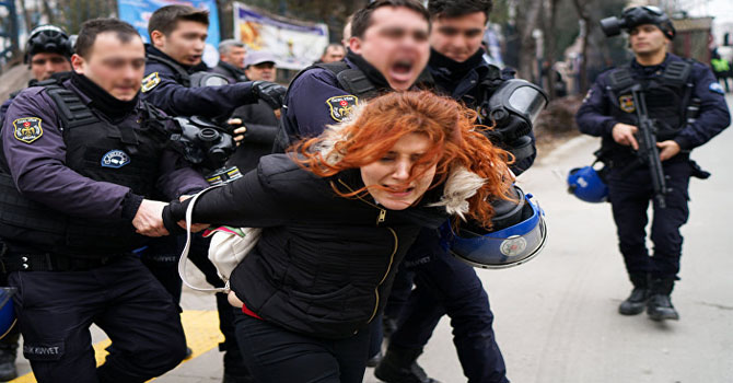 KHK ile üniversiteden uzaklaştırılan akademisyenler #HayırGitmiyoruz çağrısıyla Ankara Üniversitesi Cebeci Yerleşkesi’nde bir araya gelmek istedi. Ancak, üniversitelerine girmek isteyen akademisyenlere polis müdahale etti.