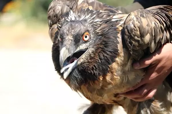 Türkiye'de yaşayan en nadir akbaba türlerinden sakallı akbaba, Cilo Dağı eteklerinde hayvanlarını otlatan bir çoban tarafından yaralı halde bulundu.