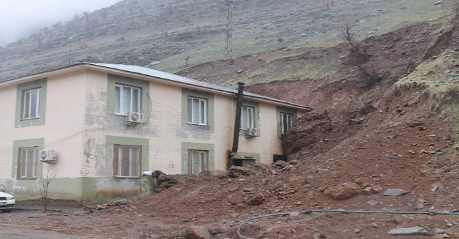Alınan bilgilere göre, Beytüşşebap ilçesi Taşarası köyünde günlerdir aralıksız yağan karla karışık yağmur nedeniyle heyelan oluştu. Heyelan nedeniyle kopan dev bir kaya parçası, öğretmenlerin kaldığı lojmana düştü. Olayda yaralanan olmazken, lojman binasında maddi hasar oluştu.