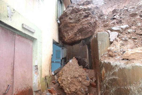 Şırnak'ın Beytüşşebap ilçesinde heyelan sonrası kopan kaya, öğretmen lojmanına düştü.
