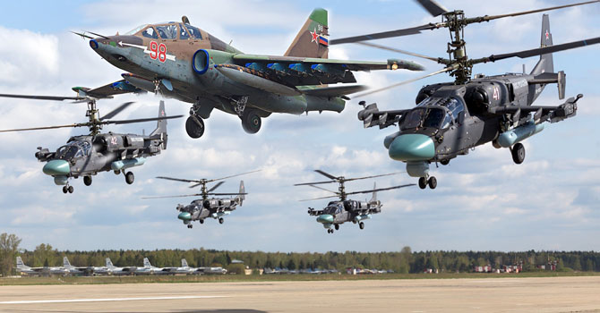 Ka-52 Alligator yeni nesil keşif ve saldırı helikopteri, her türlü hava koşulunda düşman tanklarını, zırhlı piyade araçlarını ve askeri teçhizatını imha etme becerisine sahip. Üstün manevra becerisi olan bu helikopterlerde ayrıca 30 milimetrelik otomatik silah donanımı bulunuyor.