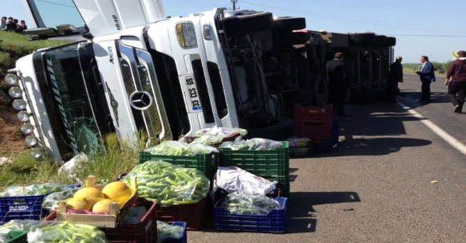 Edinilen bilgiye göre, kaza, Siverek-Diyarbakır Karayolunun 10'uncu kilometresinde yaşandı. Sürücüsünün ismi öğrenilemeyen 33 CCS 65 plakalı sebze ve meyve yüklü tır, bilinmeyen bir nedenle yan yattı. Kazada araç sürücüsü hafif şekilde yaralanırken içerisinde bulunan sebze ve meyveler ise yola savruldu. Kısa süreli trafiğe kapanan yol, meyve ve sebzelerin kaldırılmasının ardından yeniden trafiğe açıldı.