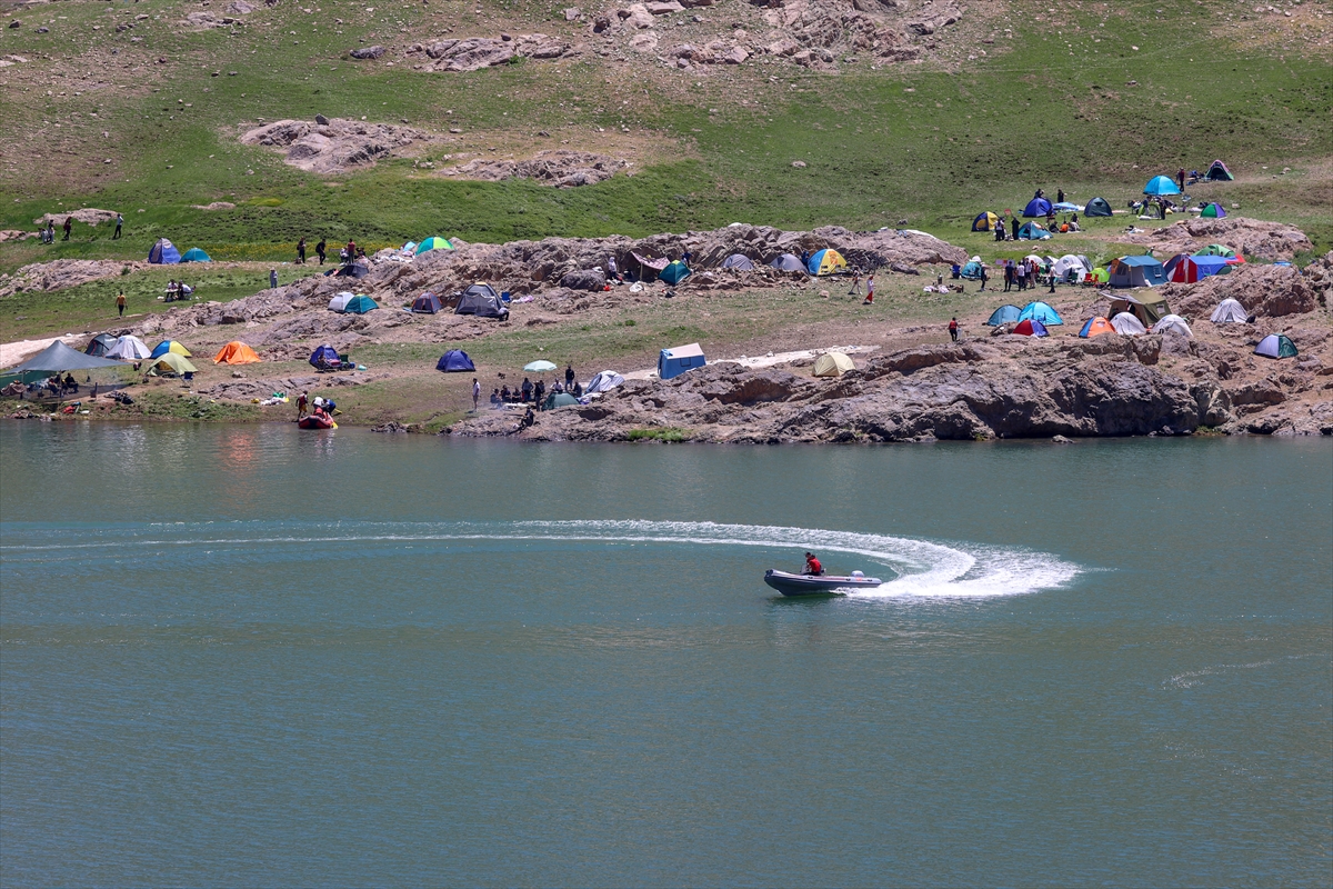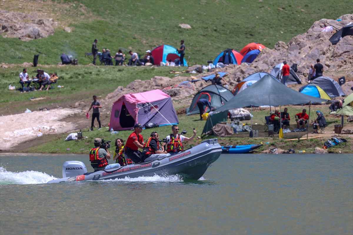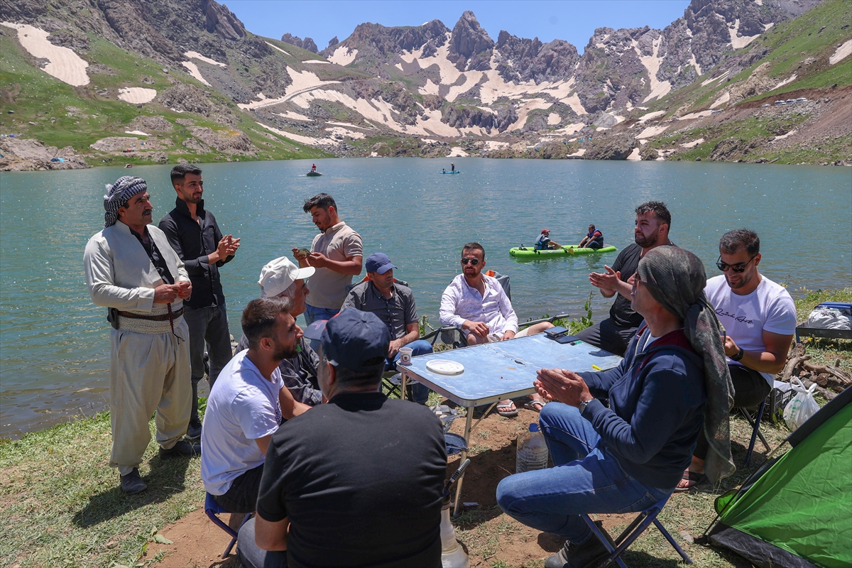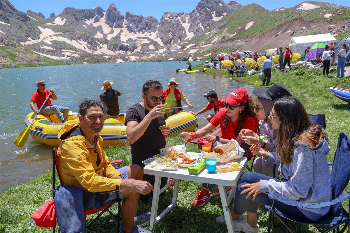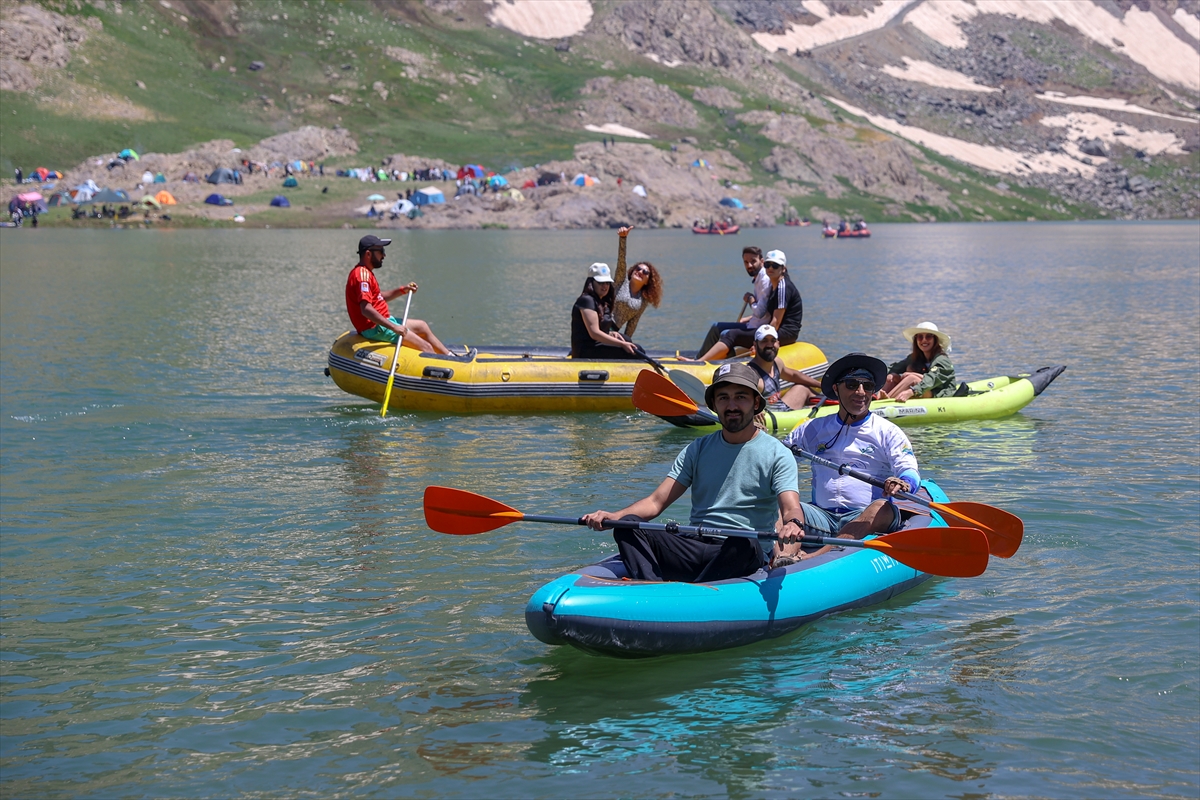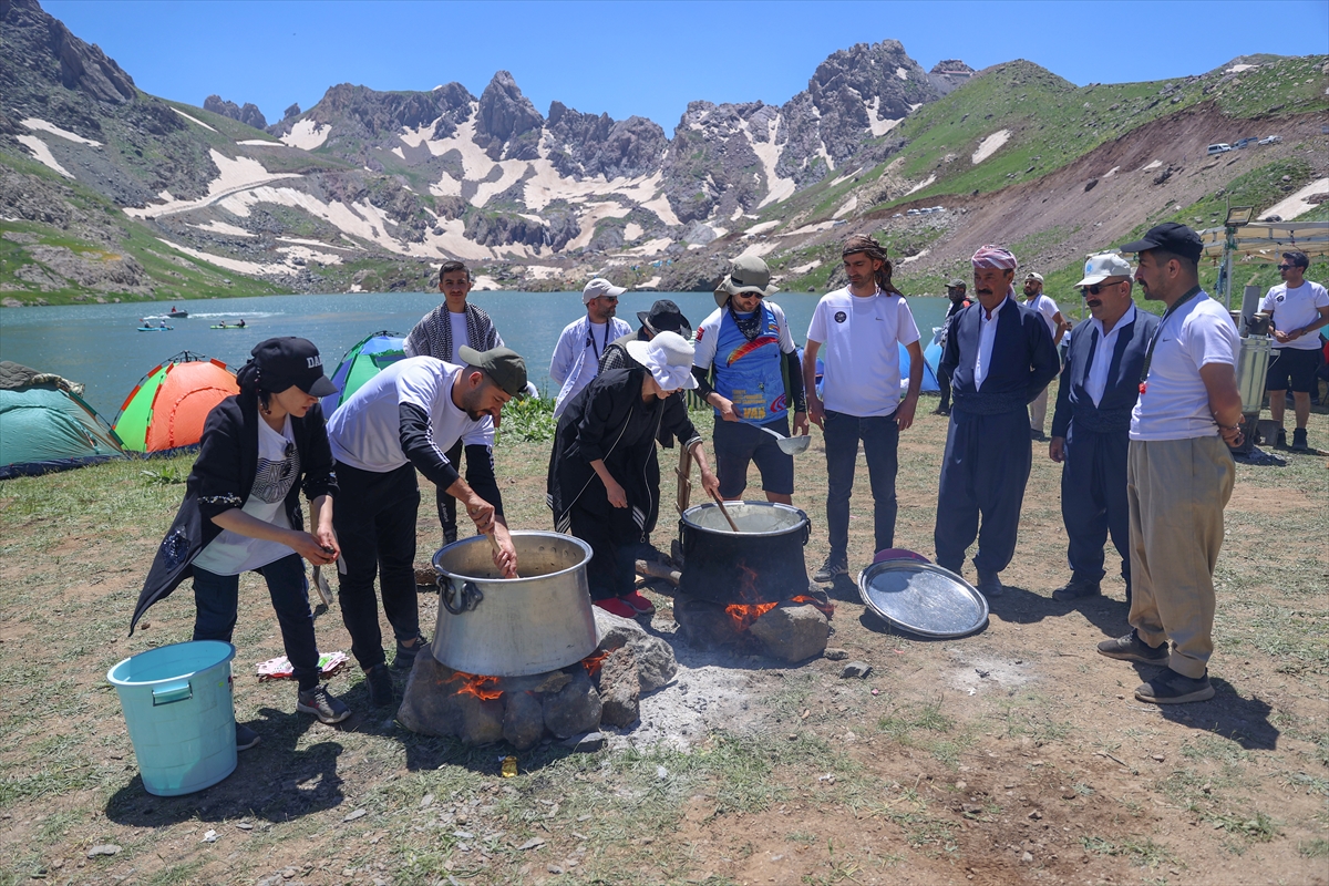 Hakkari Valiliği ve Yüksekova Belediyesi tarafından "Hakkari'de hayat var" sloganıyla bu yıl dördüncüsü düzenlenen festivale katılan doğaseverler 3 bin 400 rakımlı Sat Buzul Göllerinde buluştu.
