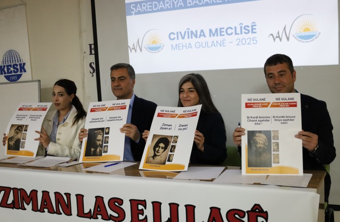 Neslihan Şedal, 15 Mayıs Kürt Dil Bayramını kutlayarak, “Dilimiz için büyük bedeller verdik. Büyük zorluklar, asimilasyon yaşandı ama halk büyük mücadeleler vererek, dilini savundu. Belediyelerimizde de Kürtçe için önemli çalışmalar yaptık ve Kürtçenin her alanda yaşaması, statüsü için mücadelemize devam edeceğiz. Bir yandan dil, kültür diğer yandan da varlık, yokluk mücadelesi verdik. 27 Şubat’ta Sayın Öcalan tarafından ilan edilen çağrı ile herkesin bu topraklar üzerinde özgürce yaşama çağrısıdır. Bu çağrıdan bugüne kadar olanlar içimizdeki barış duygusunu günden güne büyütüyor. En büyük barış halkın iradesini tanımaktır. Halkımızın talebi iktidarın artık kayyım atamamasıdır. Biz de inanıyoruz ki kayyım artık darbe olarak bu topraklarda boy göstermeyecektir” dedi.