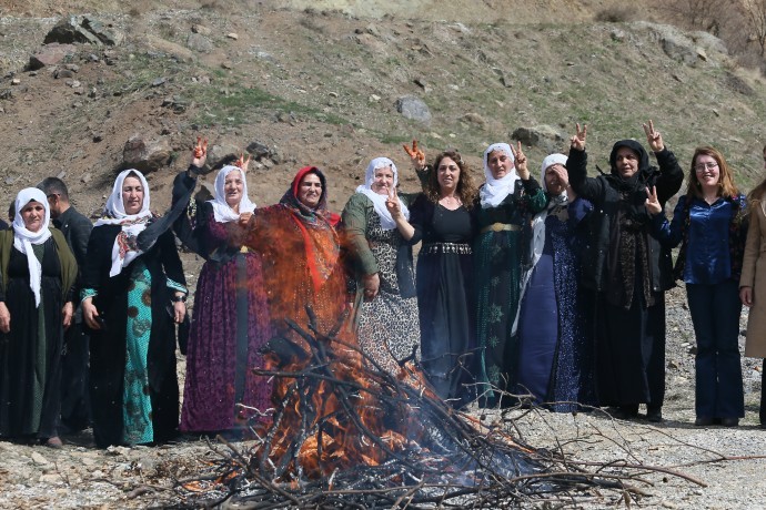 Açıklamanın ardından DTK Eşbaşkanı Berdan Öztürk, DBP Eş Genel Başkanı Saliha Aydeniz ve HDP milletvekillerinin de aralarında olduğu kalabalık bir grup, Şemdinli-Yüksekova karayolunda bulunan Dola Rewşenê'de Newroz ateşi yaktı.