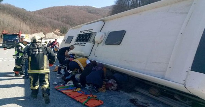 Devrilen otobüste ilk belirlemelere göre 7 kişi öldü, 30 kişi yaralandı.