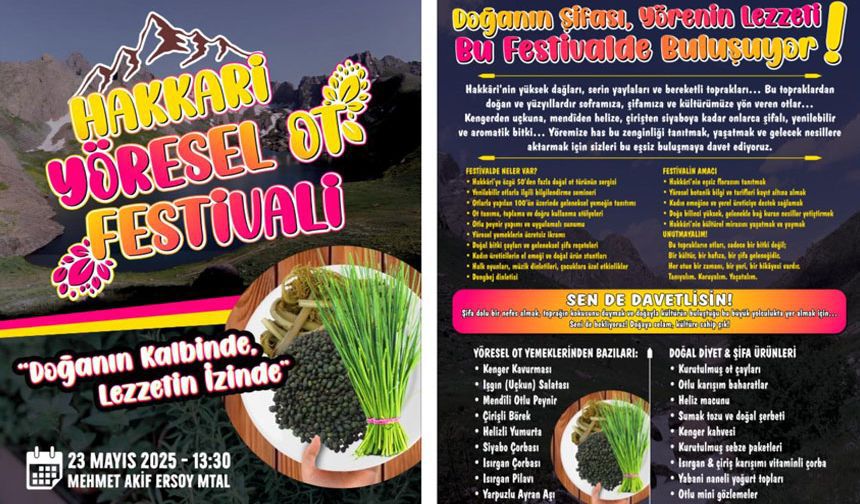 Hakkari Valiliği himayesinde ve İl Millî Eğitim Müdürlüğü koordinasyonunda gerçekleştirilecek olan “Doğanın Kalbinde Lezzetin İzinde, Hakkari Yöresel Ot Festivali”, bölgenin kültürel mirasını, mesleki eğitimi ve yerel kalkınma hedeflerini bir araya getirmeyi amaçlıyor.