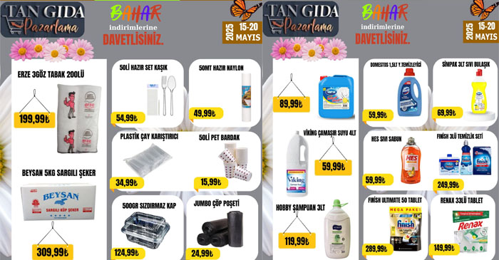 15-20 Mayıs tarihleri arasında geçerli olacak kampanya kapsamında, hem toptan hem de perakende alışveriş yapan müşteriler, kaliteli gıda ürünlerine avantajlı fiyatlarla ulaşabilecek. Geniş ürün yelpazesi ve müşteri memnuniyetine verdiği önemle öne çıkan Tan Gıda, uygun fiyat politikasıyla dikkat çekiyor.
