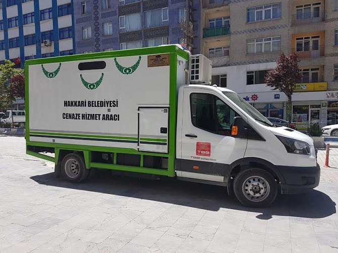 Hizmet araçlarına yenilerini kazandırmaya devam eden Hakkari Belediyesine Türkiye Belediyeler Birliği (TBB) tarafından; içerisinde soğutmalı morg bölümü, klima sistemi, lpg’li su ısıtma sistemli şofben, malzeme dolabı, yıkama küveti, lavabo ve su tankı bulunan tam donanımlı bir cenaze hizmet aracı hibe edildi.