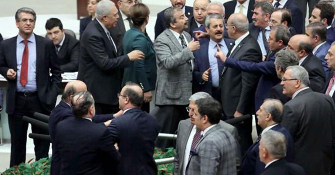 Bazı AKP’lilerin kürsüye doğru yönelmesi üzerine HDP’li Sırrı Süreyya Önder, Paylan’ı kendi sıralarına götürdü. Ak Parti’li vekillerse, “Ermeni diasporasının ifadelerini kullanamazsın burada. Böyle ifade özgürlüğü olmaz. Bu ne edepsizlik, bu ne şahsiyetsizlik” diye tepki gösterdi.