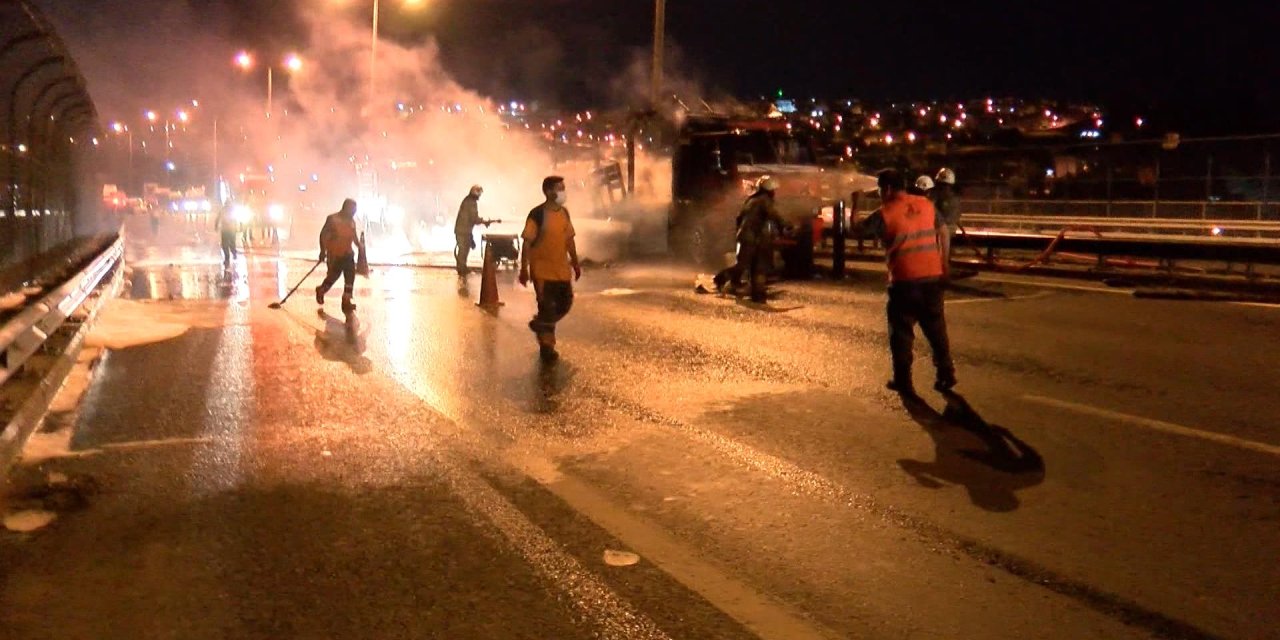 Yangın, saat 03.00 sıralarında TEM Otoyolu Yarımburgaz Viyadüğü Ankara istikametinde saat 03.00 sıralarında meydana geldi. Karayolları Genel Müdürlüğü’ne bağlı ekipler viyadük üzerinde derz çalışması yaparken, kasasında oksijen tüpleri bulunan 60 ACG 778 plakalı kamyonda henüz belirlenemeyen bir nedenle yangın çıktı.