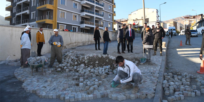Hakkari Valisi ve Belediye Başkan Vekili İdris Akbıyık, Gençlik Caddesinde begonit taşı ile döşenen kaldırım çalışmalarını yerinde denetleyerek, ilgilerden bilgi aldı.