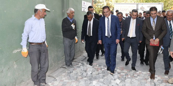Vali Akbıyık, beraberindeki İl Emniyet Müdürü Salavat Mete Pınar ve Belediye Başkan Yardımcısı Hamit Zibek ile taş görünümlü kapalı halk pazarı inşaatını ve bağlantı yollarına döşenen begonit taşı yol yapımı çalışmalarını yerinde denetledi.