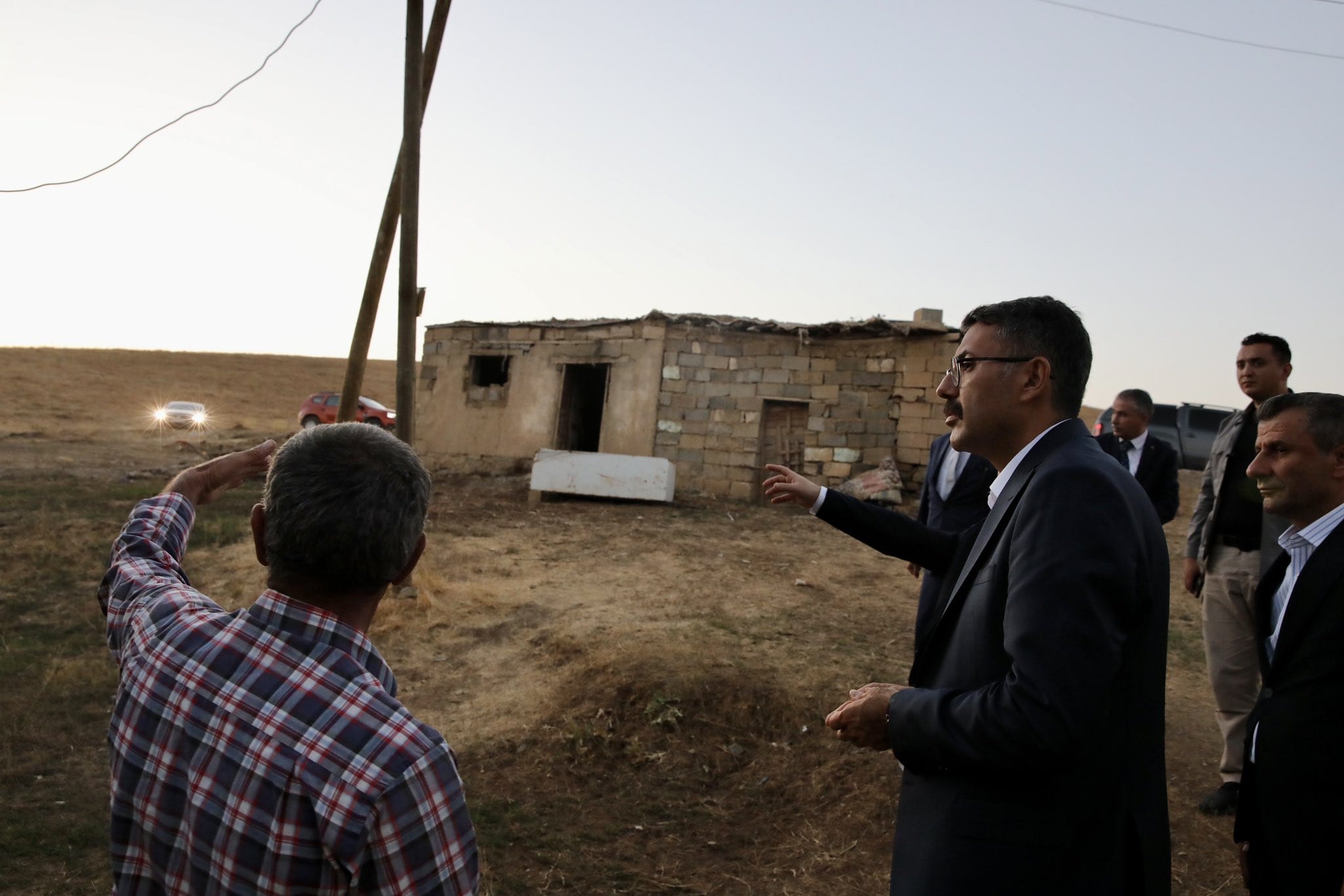İlçe Kaymakamı Ömer Çimsit ve yetkililerin eşlik ettiği Vali Çelik, Ölmez ailesi ile yaşanan zararın boyutunu ve konu hakkında bilgi aldı.
