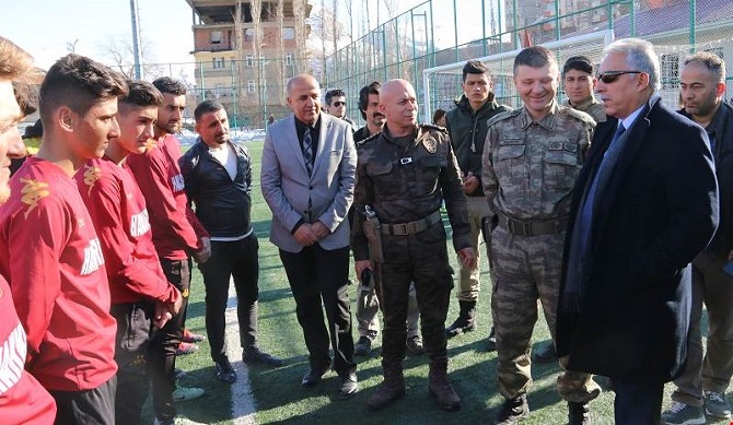 Hakkari Valisi Cüneyit Orhan Toprak, Hakkârispor ve Hakkârigücü futbolcuları ziyaret ederek yaptığı antrenmanları izledi.