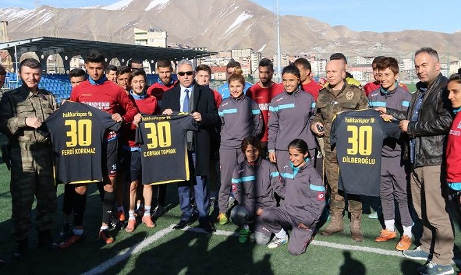 13 Mart 2017 tarihinde Diyarbakır Bağlar Belediyespor ile kendi sahasına oynayacağı müsabakanın hazırlıklarını sürdüren Hakkârisporlu futbolcular, Vali Toprak, İl Jandarma Komutanı Tuğgeneral Ferdi Korkmaz ve İl Emniyet Müdürü Süleyman Suvat Dilberoğlu’na üzerinde isimlerinin yazılı olduğu Hakkârispor forması hediye etti.