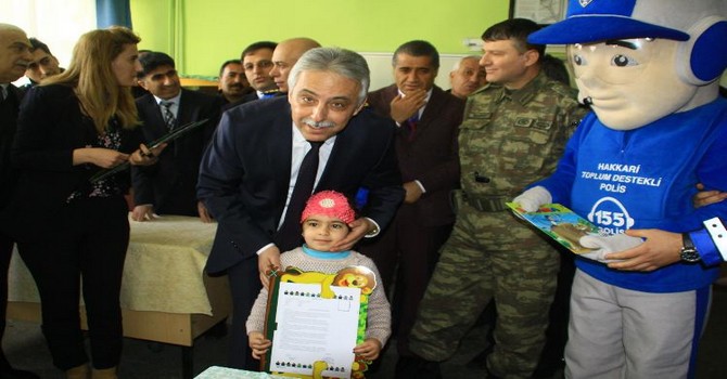 İl Milli Eğitim Müdürlüğü tarafından Merzan Mahallesinde bulunan Cengiz Topel İlkokulu’nda düzenlenen karne dağıtım törenine Hakkari Valisi Cüneyt Orhan Toprak, Jandarma alay komutanı Tuğgeneral Ferdi Korkmaz, İl Emniyet Müdürü Süleyman Suvat Dilberoğlu ve Milli Eğitim Müdürü Veysel Durgun ile şube müdürleri ve öğretmenler katıldı.
