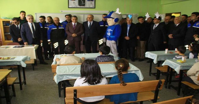 Vali Toprak, okul girişinde öğrenciler tarafından verilen çiçek ve çikolata ikramıyla karşılandı. Daha sonra Vali Toprak ve beraberindekiler temsili olarak 1- A sınıfı ile 8,A sınıflarını gezerek öğrencilere karnelerini dağıtırken, İl Milli Eğitim Müdürlüğüne bağlı Toplum Destekli Polislik Şube Müdürlüğü ekipleri de kanka polis kostümüyle öğrencilere boyama defteri ve kitabı hediye etti.
