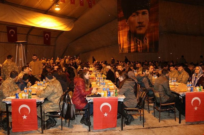 Yüksekova 3. Piyade Tümen Komutanlığı tarafından Çanakkale Deniz Zaferi’nin 102. Yıldönümü ve 18 Mart Şehitleri Anma Günü dolayısıyla şehit yakınları ve gazilere yönelik yemek programı düzenlendi.