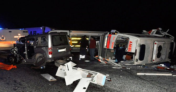 Hasta taşıyan özel bir hastanenin ambulansı ile otomobil kafa kafaya çarpıştı. Kazada 4 kişi öldü, 1 kişi de yaralandı.